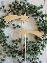Dřevěný zápich ve tvaru komety je z masivního dřeva, vhodný k dekoraci do interiéru i exteriéru. Venku je ovšem nutné počítat s tím, že díky povětrnostním vlivům přidá postupem času patina dřeva na intenzitě, jak už to u dřeva venku bývá. Cena je za 1 kus.