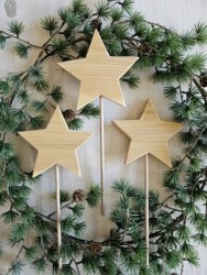 Dřevěný zápich ve tvaru hvězdy je z masivního dřeva, vhodný k dekoraci do interiéru i exteriéru. Venku je ovšem nutné počítat s tím, že díky povětrnostním vlivům přidá postupem času patina dřeva na intenzitě, jak už to u dřeva venku bývá. Cena je za 1 kus.