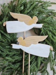 Dřevěný zápich ve tvaru anděla je z masivního dřeva, vhodný k dekoraci do interiéru i exteriéru. Venku je ovšem nutné počítat s tím, že díky povětrnostním vlivům přidá postupem času patina dřeva na intenzitě, jak už to u dřeva venku bývá. Cena je za 1 kus.