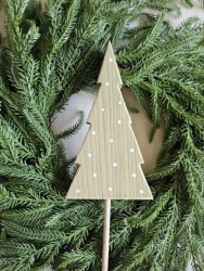 Dřevěný zápich ve tvaru stromečku je z masivního dřeva, vhodný k dekoraci do interiéru i exteriéru. Venku je ovšem nutné počítat s tím, že díky povětrnostním vlivům přidá postupem času patina dřeva na intenzitě, jak už to u dřeva venku bývá. Cena je za 1 kus.