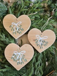 Závěsné dřevěné srdíčko se jmelím hnědé