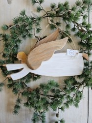 Anděl je z masivního dřeva s patinou, k pověšení, ručně dělaný se srdcem a láskou, co kus, to originál. Je vhodný k dekoraci do interiéru i exteriéru. Venku je ovšem nutné počítat s tím, že díky povětrnostním vlivům přidá postupem času patina dřeva na intenzitě, jak už to u dřeva venku bývá.
