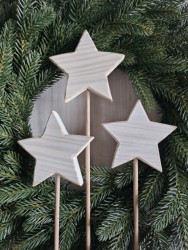 Dřevěný zápich ve tvaru hvězdy je z masivního dřeva, vhodný k dekoraci do interiéru i exteriéru. Venku je ovšem nutné počítat s tím, že díky povětrnostním vlivům přidá postupem času patina dřeva na intenzitě, jak už to u dřeva venku bývá. Cena je za 1 kus.