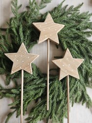Dřevěný zápich ve tvaru hvězdy je z masivního dřeva, vhodný k dekoraci do interiéru i exteriéru. Venku je ovšem nutné počítat s tím, že díky povětrnostním vlivům přidá postupem času patina dřeva na intenzitě, jak už to u dřeva venku bývá. Cena je za 1 kus.