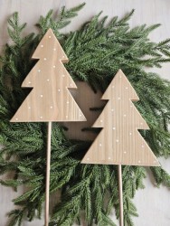 Dřevěný zápich ve tvaru stromečku je z masivního dřeva, vhodný k dekoraci do interiéru i exteriéru. Venku je ovšem nutné počítat s tím, že díky povětrnostním vlivům přidá postupem času patina dřeva na intenzitě, jak už to u dřeva venku bývá. Cena je za 1 kus.