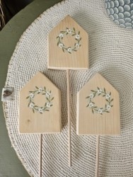 Dřevěný zápich ve tvaru domečku je z masivního dřeva, vhodný k dekoraci do interiéru i exteriéru. Venku je ovšem nutné počítat s tím, že díky povětrnostním vlivům přidá postupem času patina dřeva na intenzitě, jak už to u dřeva venku bývá. Cena je za 1 kus.