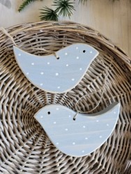 Dřevěný ptáček s patinou je závěsný, z masivního dřeva, zdobený ručně malovanými lístečky, vhodný k dekoraci do interiéru i exteriéru. Venku je ovšem nutné počítat s tím, že díky povětrnostním vlivům přidá postupem času patina dřeva na intenzitě, jak už to u dřeva venku bývá.