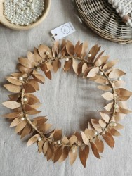 Věneček je dělaný z vázacího drátku a papírové lepící pásky, doplněno skleněnými perličkami.
