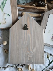 Dřevěný závěsný domeček s klipsem je z masivního dřeva, ručně dělaný se srdcem a láskou, co kus, to originál. Zpředu má klips, do kterého můžete přidávat obrázky či fotky dle nálady nebo ročního období a zezadu má kovové očko k zavěšení.