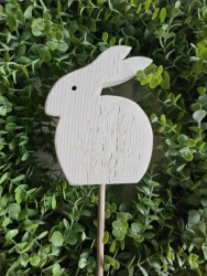 Dřevěný zápich ve tvaru zajíčka je z masivního dřeva, vhodný k dekoraci do interiéru i exteriéru. Venku je ovšem nutné počítat s tím, že díky povětrnostním vlivům přidá postupem času patina dřeva na intenzitě, jak už to u dřeva venku bývá.