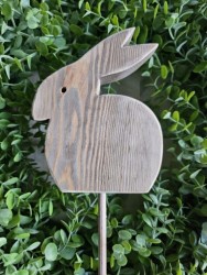 Dřevěný zápich ve tvaru zajíčka je z masivního dřeva, vhodný k dekoraci do interiéru i exteriéru. Venku je ovšem nutné počítat s tím, že díky povětrnostním vlivům přidá postupem času patina dřeva na intenzitě, jak už to u dřeva venku bývá.