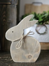 Zajíček je z masivního dřeva s patinou, k  postavení, ručně dělaný se srdcem a láskou, co kus, to originál. Je vhodný k dekoraci do interiéru i exteriéru. Venku je ovšem nutné počítat s tím, že díky povětrnostním vlivům přidá postupem času patina dřeva na intenzitě, jak už to u dřeva venku bývá.