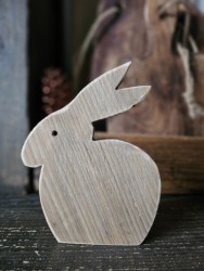 Dřevěný zajíček je z masivního dřeva, vhodný k dekoraci do interiéru i exteriéru. Venku je ovšem nutné počítat s tím, že díky povětrnostním vlivům přidá postupem času patina dřeva na intenzitě, jak už to u dřeva venku bývá.