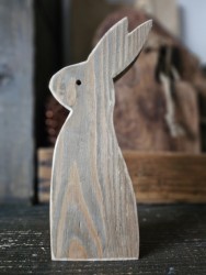 Dřevěný zajíček je z masivního dřeva, vhodný k dekoraci do interiéru i exteriéru. Venku je ovšem nutné počítat s tím, že díky povětrnostním vlivům přidá postupem času patina dřeva na intenzitě, jak už to u dřeva venku bývá.