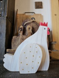 Dřevěná slepička velká bílá, bílé křídlo s puntíky