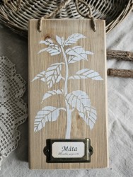 Dřevěná závěsná dekorace s bylinkou je z masivního dřeva, ručně dělaná se srdcem a láskou, co kus, to originál. Dřevo má i praskliny a patinu.