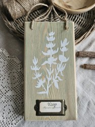 Dřevěná závěsná dekorace s bylinkou je z masivního dřeva, ručně dělaná se srdcem a láskou, co kus, to originál. Dřevo má i praskliny a patinu.