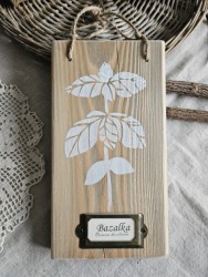 Dřevěná závěsná dekorace s bylinkou je z masivního dřeva, ručně dělaná se srdcem a láskou, co kus, to originál. Dřevo má i praskliny a patinu.