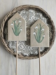 Dřevěný zápich ve tvaru domečku je z masivního dřeva, vhodný k dekoraci do interiéru i exteriéru. Venku je ovšem nutné počítat s tím, že díky povětrnostním vlivům přidá postupem času patina dřeva na intenzitě, jak už to u dřeva venku bývá. Cena je za 1 kus.