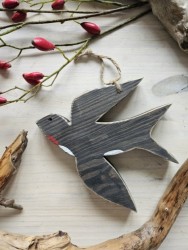 Vlaštovka je z masivního dřeva s patinou, k pověšení, ručně dělaná se srdcem a láskou, co kus, to originál. Je vhodná k dekoraci do interiéru i exteriéru. Venku je ovšem nutné počítat s tím, že díky povětrnostním vlivům přidá postupem času patina dřeva na intenzitě, jak už to u dřeva venku bývá.