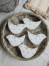 Dřevěný ptáček s patinou je závěsný, z masivního dřeva, zdobený ručně malovanými lístečky, vhodný k dekoraci do interiéru i exteriéru. Venku je ovšem nutné počítat s tím, že díky povětrnostním vlivům přidá postupem času patina dřeva na intenzitě, jak už to u dřeva venku bývá.