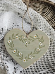 Závěsné dřevěné srdíčko s věnečkem č.2